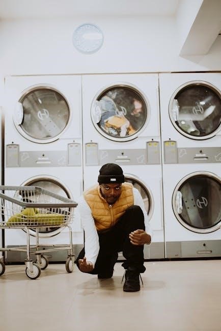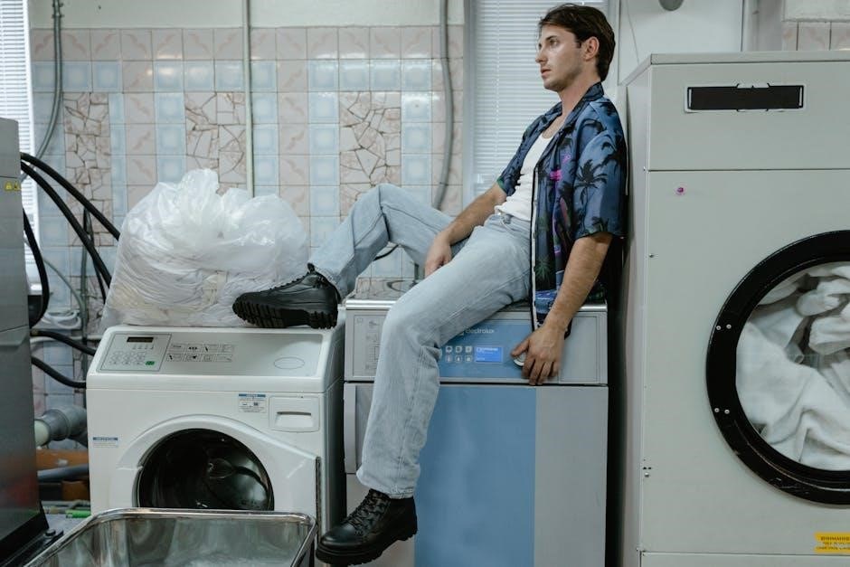 Load laundry according to the washer-dryer’s capacity, as specified in the manual. Ensure balanced distribution to prevent vibration. Overloading can reduce performance and damage the appliance. Separate delicate fabrics from heavier items and avoid overstuffing. Check pockets for loose items like coins or keys to prevent damage. For drying, leave space for air circulation to ensure efficient drying. Follow the recommended load limits for both washing and drying cycles to maintain optimal functionality and extend the appliance’s lifespan.